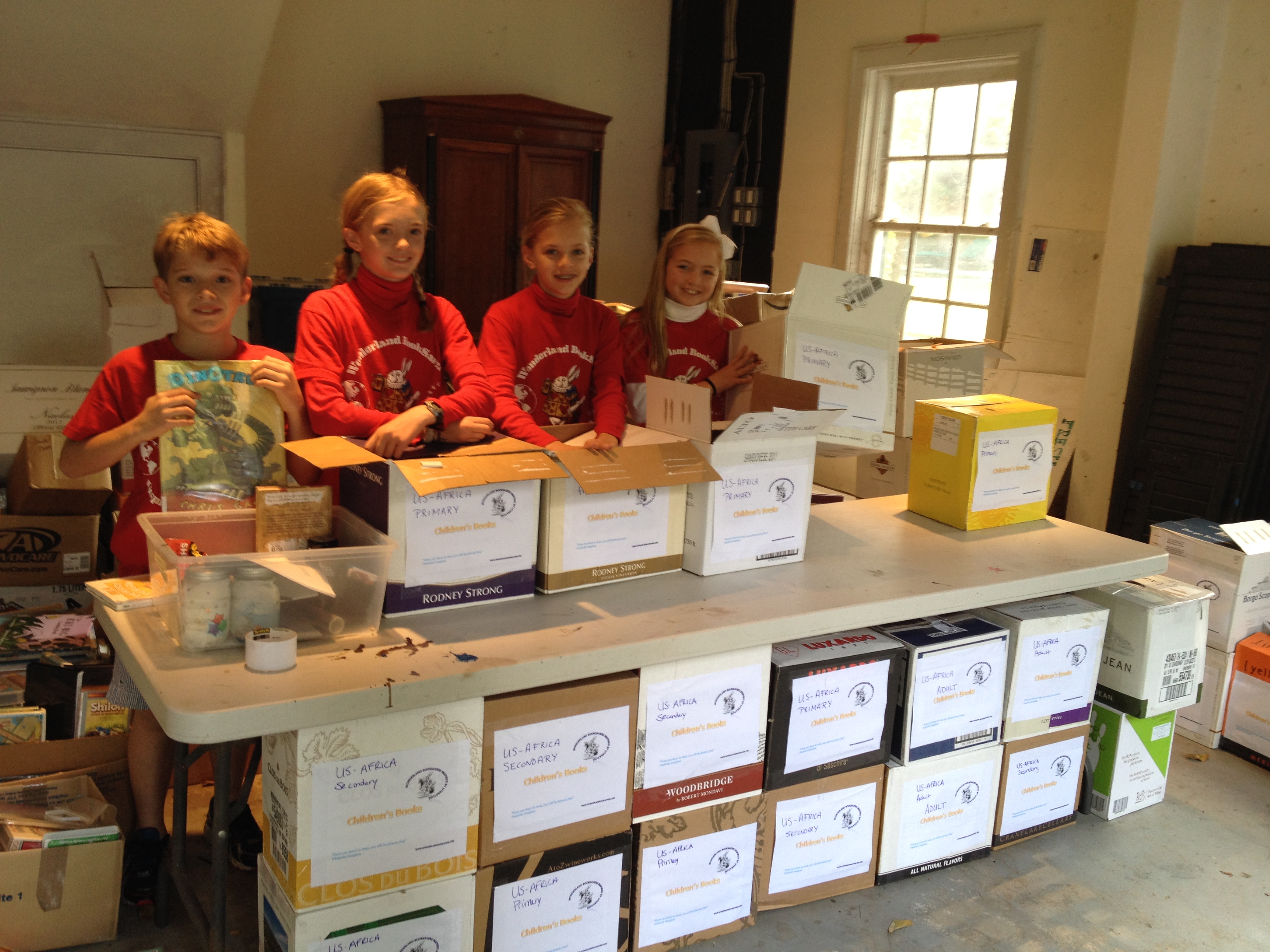 The Wonderland BookSavers got their start for the school year, packing books to send to Africa with the US-Africa Children’s Fellowship. Books were carefully sorted by age level (primary and secondary) and labeled. We’re really excited to see where these books are headed! We look forward to meeting with the founder and head of the organization that will aid us in distributing the books.