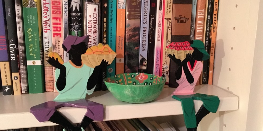 Additionally, at the end of our meeting, Susy presented us with gifts from the children in Haiti. When we donated the children in Haiti books and school supplies, we also sent poster pals, which are banners with notes of love, drawings, and pictures from us and school children in our area. In return, we received paper mâché figurines and pottery.