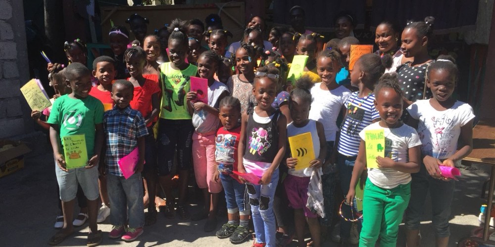 The children of Fondation Jean Bellande Joseph in Cayes-Jacmel send heartfelt thanks for the beautiful books created by the students in John McMillan and Josh Cummings’ French classes from Von Steuben Metropolitan Science Center in Chicago, and delivered to us by Allie through Wonderland BookSavers.
