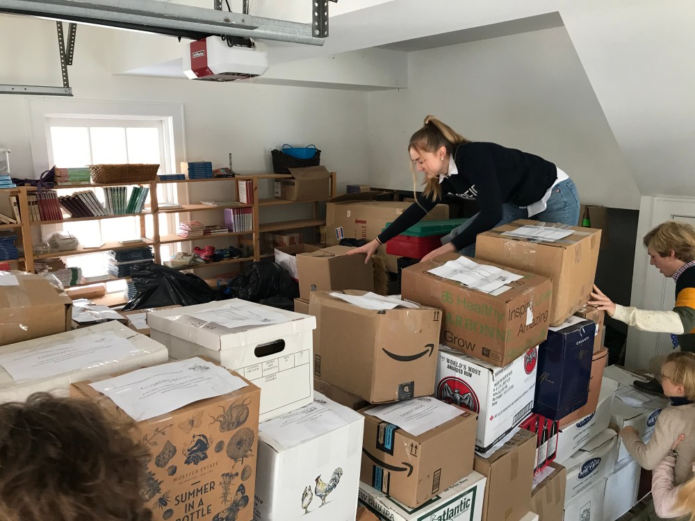 Our team gathered to box the numerous books and supplies that we have been collecting over the past several months.