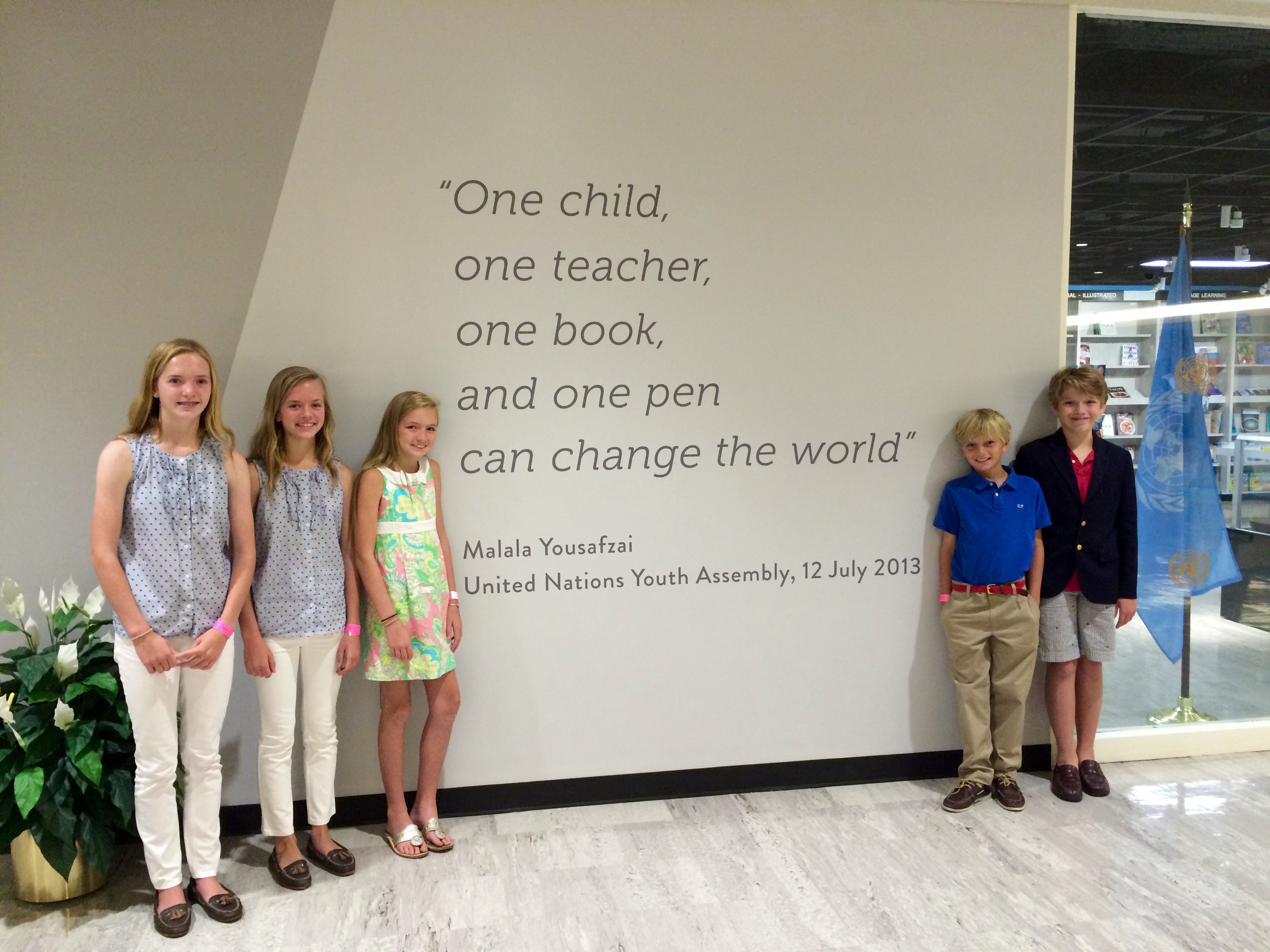 This summer we were lucky enough to have the opportunity to tour the United Nations in NYC. We were thrilled to find Malala’s quote etched in stone, “One child, one teacher, one book, and one pen can change the world.” (2015)