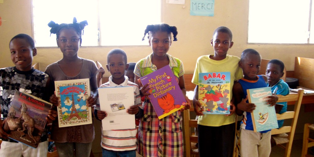Today we donated our entire collection of French children’s books to our Haitian partners. We were so gratified to receive photographs of children reading the books we had previously donated.