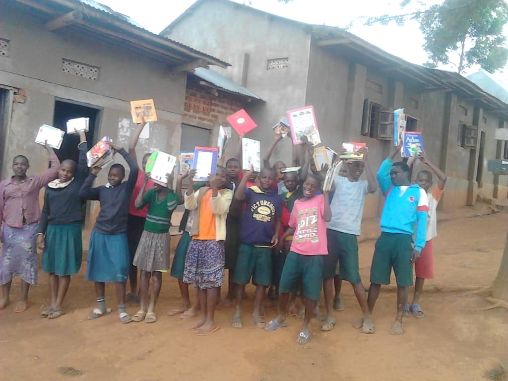 “With smiling heart and face, am happy to inform you that your donated 52 boxes of books, learning materials and sports and games equipments have arrived today in Uganda and at Kyamaganda Community Development Organization. My team was happy with the Bible’s too which will strengthen the spiritual nurture of our project staff.